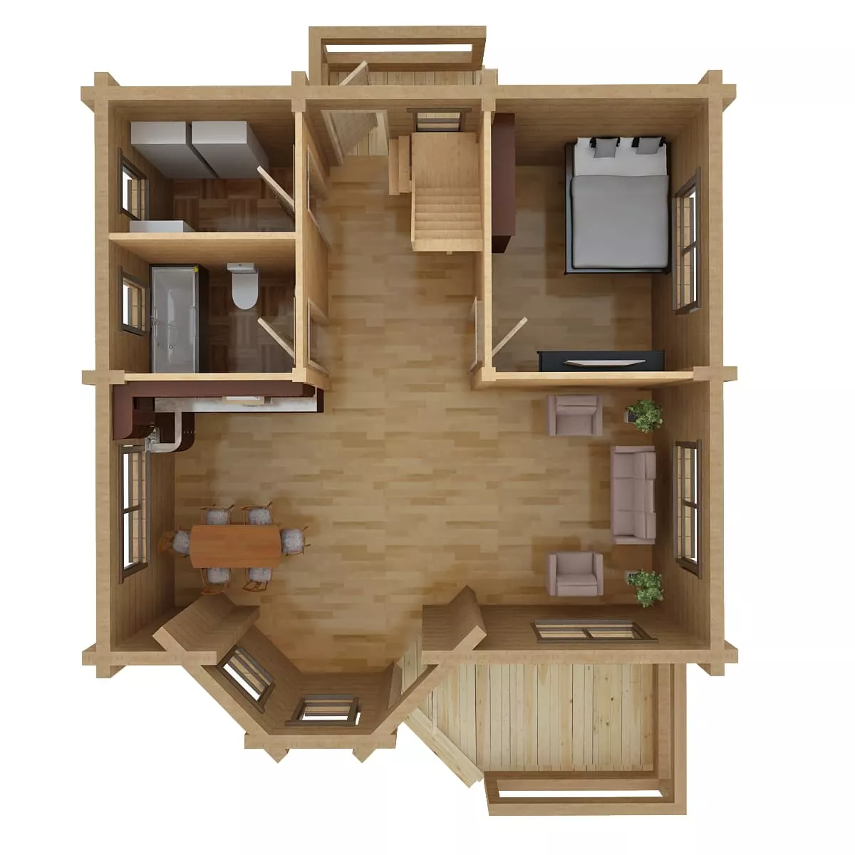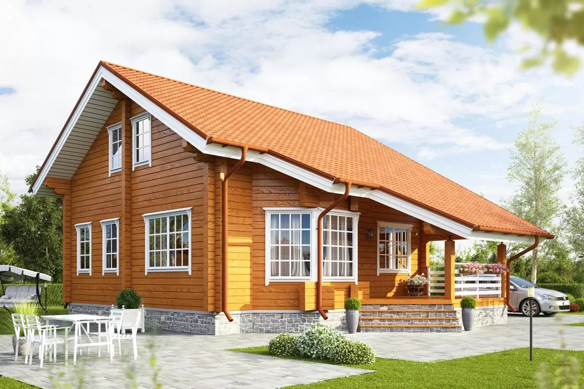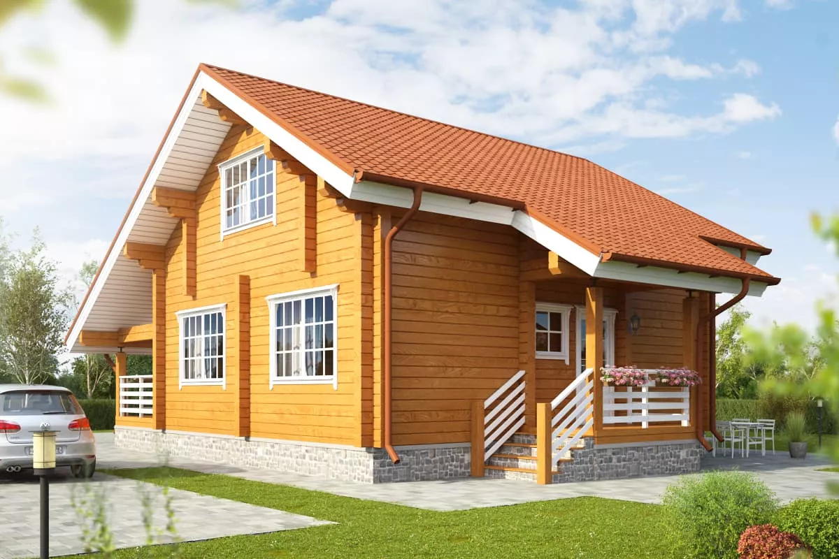 Prețul afișat include construcția completă a casei din bușteni, realizată din lemn natural de calitate, conform proiectului ales.